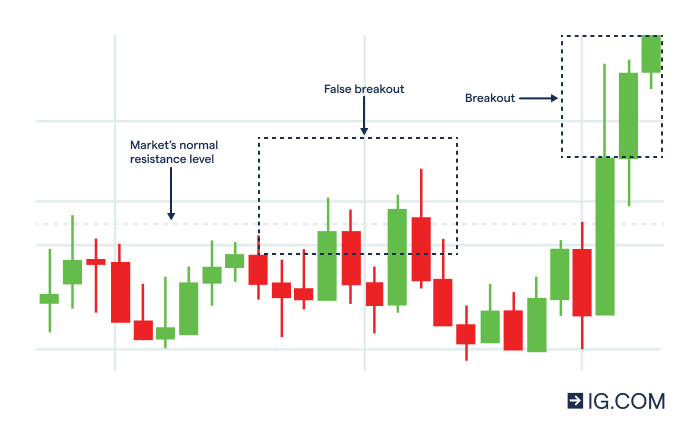 That’s because, generally, a breakout is more likely to be false when it hits the same support or resistance level a number of times, but has always pulled back from this point before. However, the more unusual it is for an underlying asset to break through a certain price range, the more likely it’s driven by true momentum and high volumes – often the sign of a true breakout.