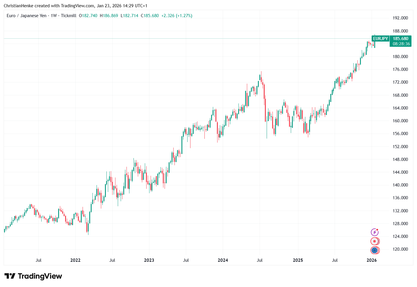 EUR/JPY Chart auf Tagesbasis