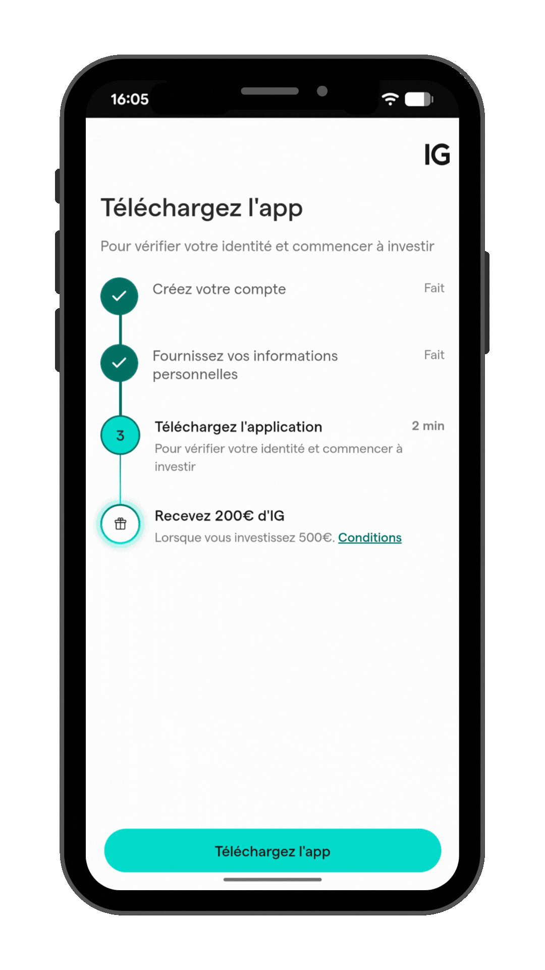 ✓ Vous êtes nouveau chez IG ? Recevez 200 € pour démarrer en investissant 500 €²