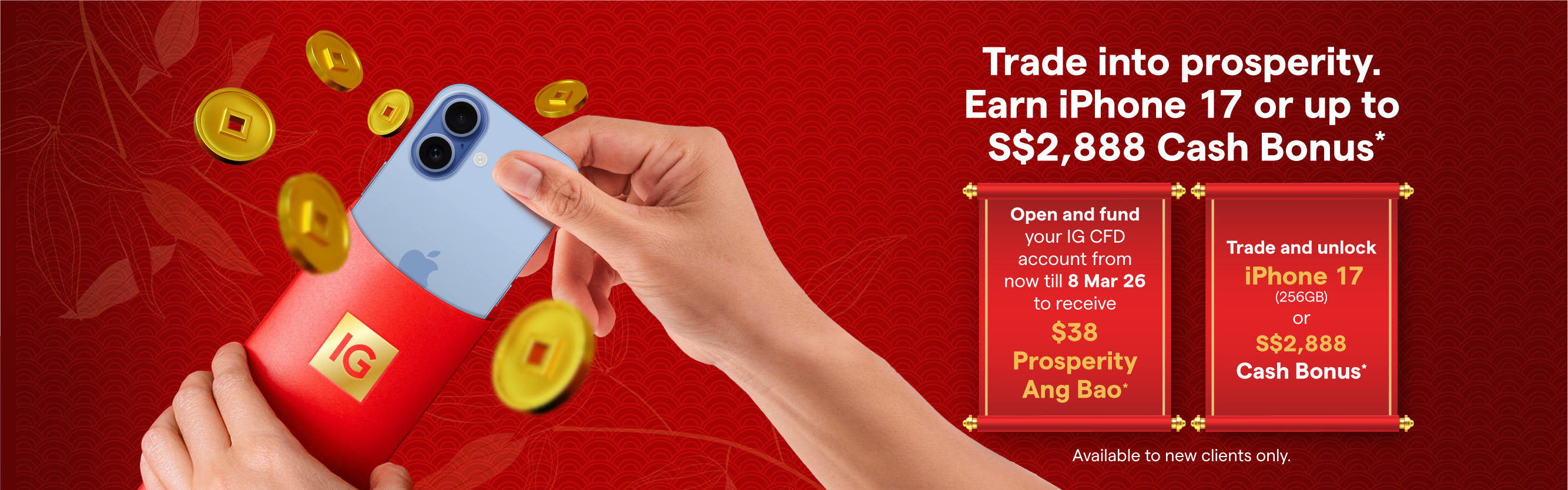 Trade CFDs to unlock your reward from S$88, $188, $888, iPhone 17 (256GB) or S$2,888 cash