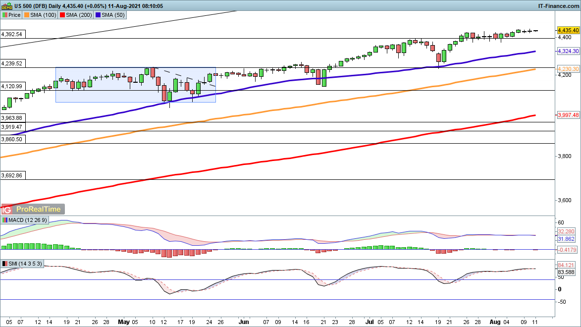 While the DAX is still struggling to push above recent highs, the FTSE 100 is on the up and the S&P 500 is moving to new record highs.