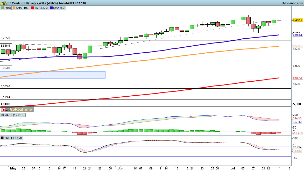 Oil continues to shrug off any weakness, and is looking to make new gains towards last week’s highs.