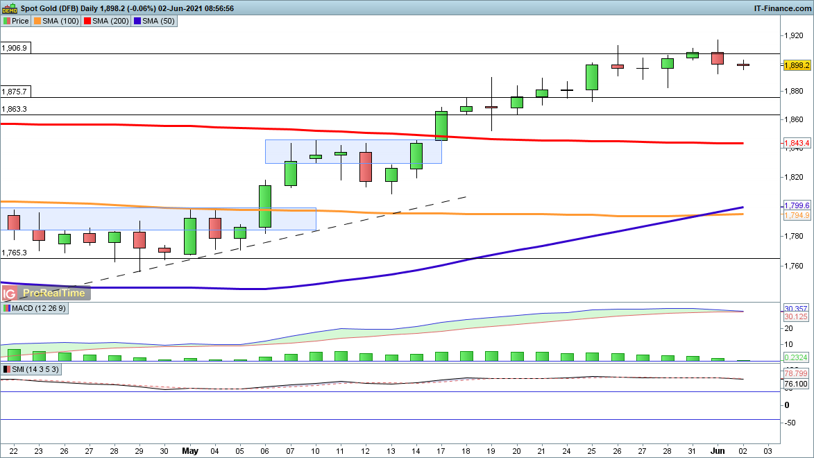The gold price remains in an uptrend despite falling back from yesterday’s highs. It has yet to indicate that a higher high has been formed on the daily chart, and instead looks set to keep pushing higher. A bearish reversal has yet to be seen, and instead further consolidation seems to be the order of the day.