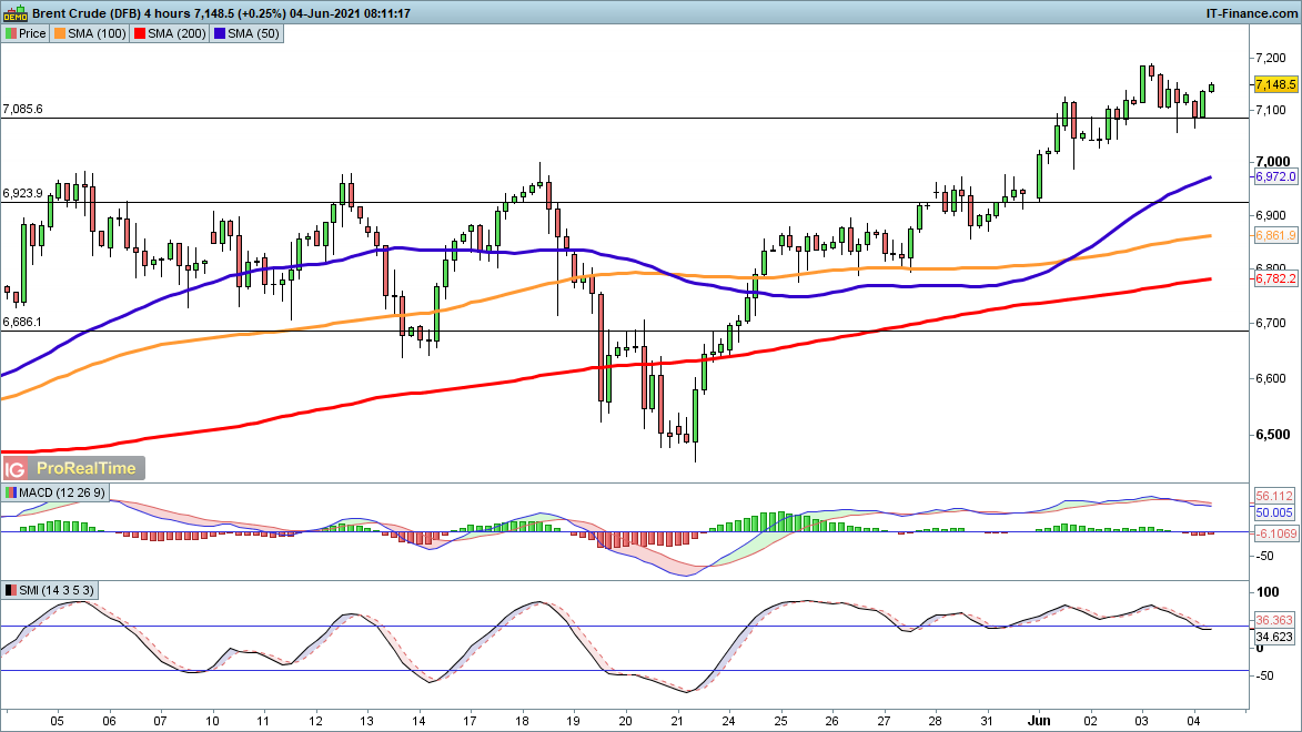 Brent crude continues to show signs of bullishness, after a small drop towards $71 over the past two days. The bounce from here has gathered pace and targets gains above $72, with the uptrend of the past three weeks still firmly in place.