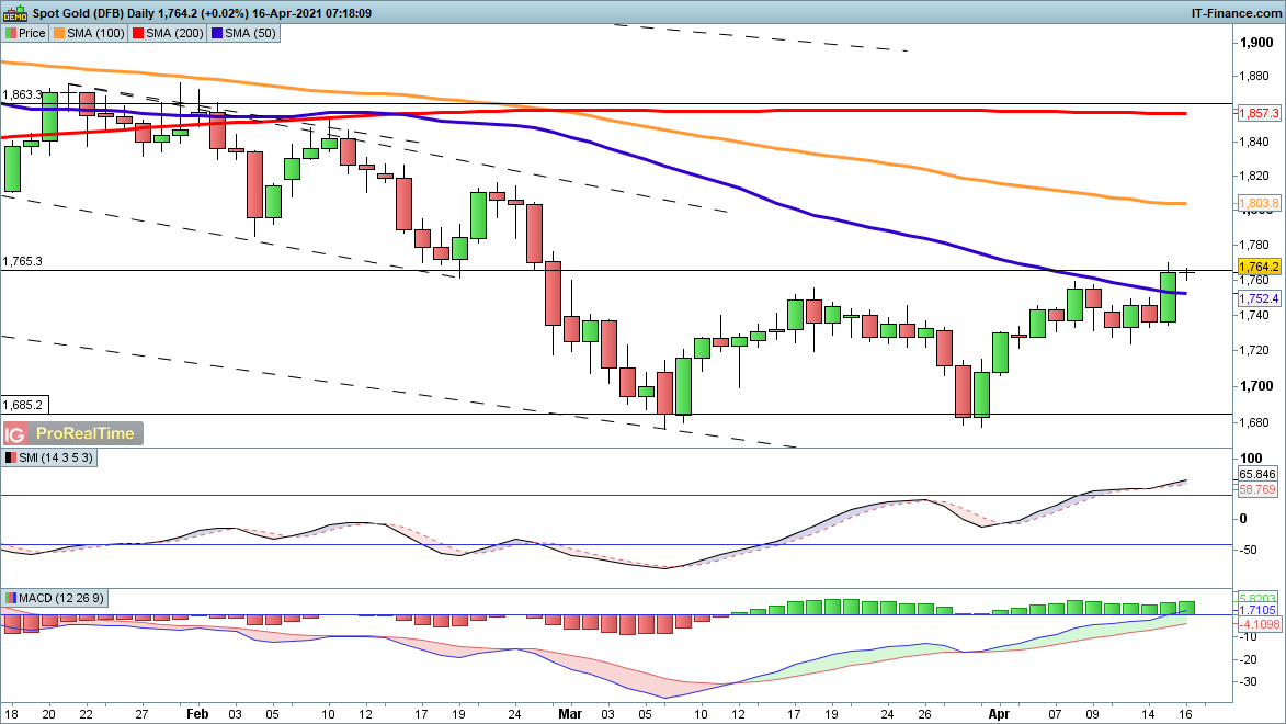 Gold's recovery continues, with the price moving back above the 50-day SMA ($1752) for the first time since the beginning of January. Further gains head towards $1820 and then $1840, and the revival looks set to continue unless the bears can push the price back below $1740 and reverse the recent breakout above $1750.