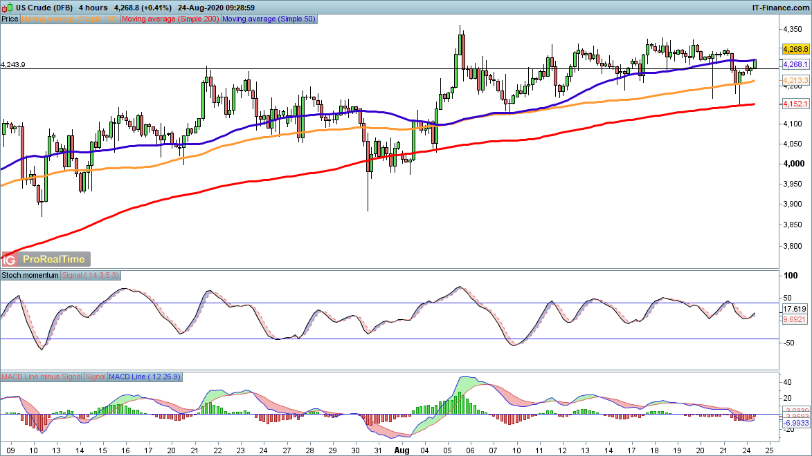 The revival in risk-on sentiment will help crude to recover from its weakness last week. A push above $43 is still needed to provide a more bullish outlook, while sellers have to breach $41.50, a major level of support over the past month, in order to create any real traction for a bearish move.