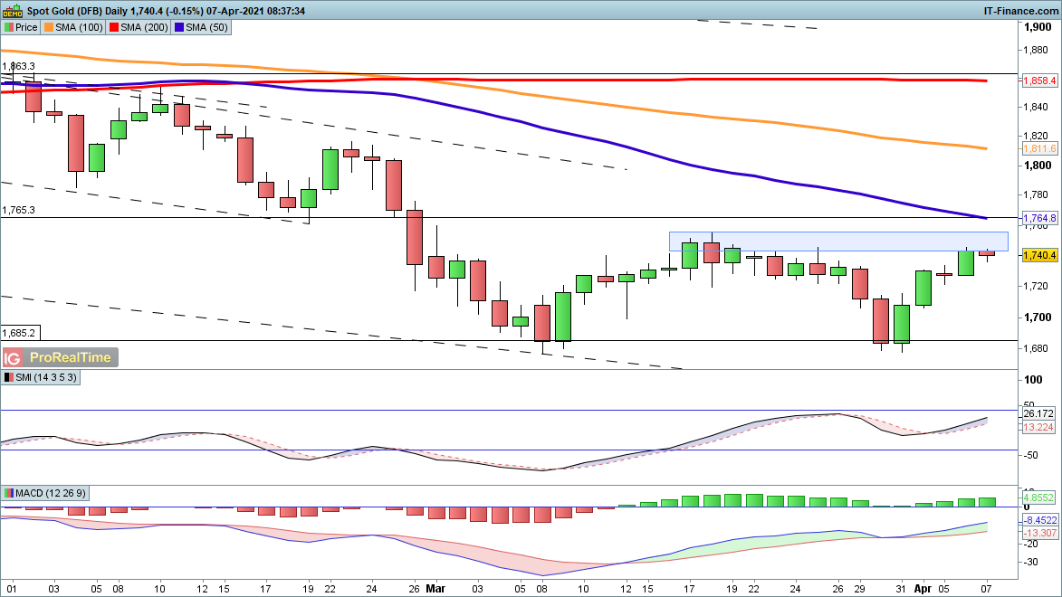Gold is heading back towards highs last seen in mid-March, while oil is seemingly unable to pick itself up after recent losses