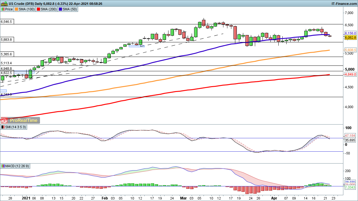 WTI's reversal below the 50-day SMA reinforces the negative outlook for the price, as the bounce of early April is faded and a more bearish view takes hold. Bulls will need to recover the lost ground of the previous two sessions and take back the $64 level. Further losses head to $58 in the near-term.