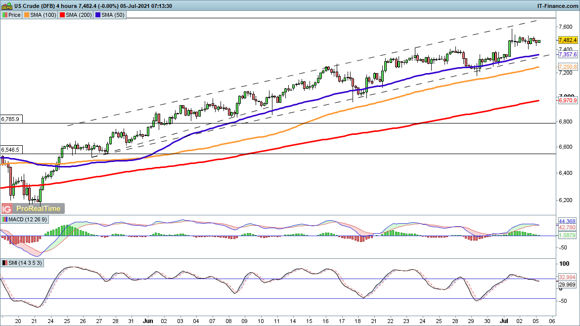 ‘Steady and relentless’ is still the theme for oil, with a rising channel continuing to prevail, as it has done since late May. Additional upside targets $76.81, while a move below $73 would be needed to dampen the overall bullish view.