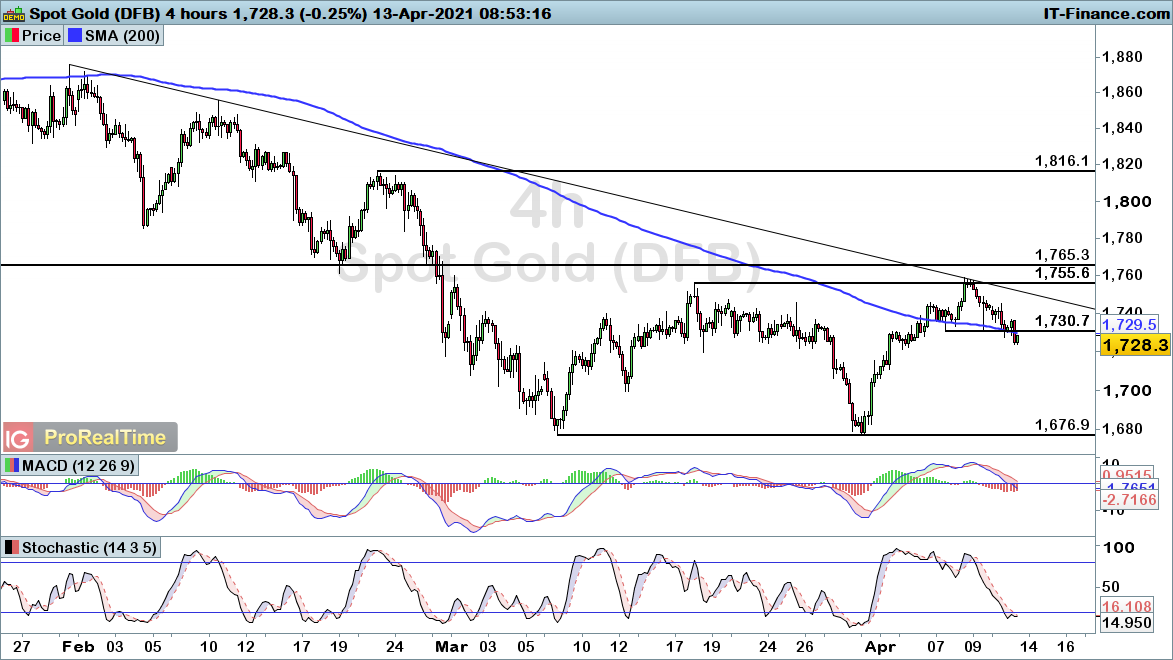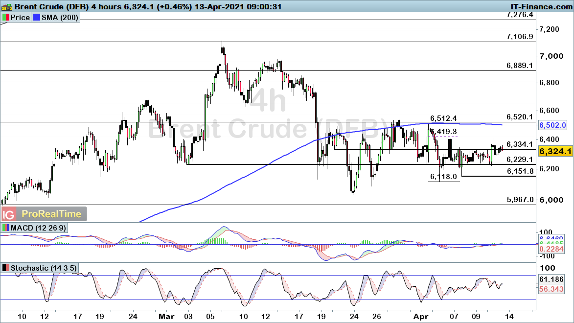 Gold starts to weaken after rally into key resistance, while Brent crude continues to consolidate with a clear lack of direction.