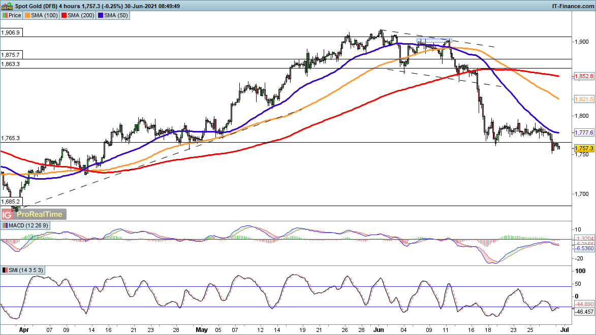 Gold has broken to the downside after more than a week of indecision, while oil prices are also coming under some selling pressure.