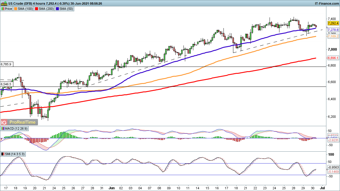 Oil has recovered from yesterday’s lows but for now is holding below $73. This weakness so far today is not unduly concerning for the buyers, unless we see a bigger move back below $72. This could then signal a move back towards $70 in the near-term. Further gains above $73 signal a revival of the uptrend.