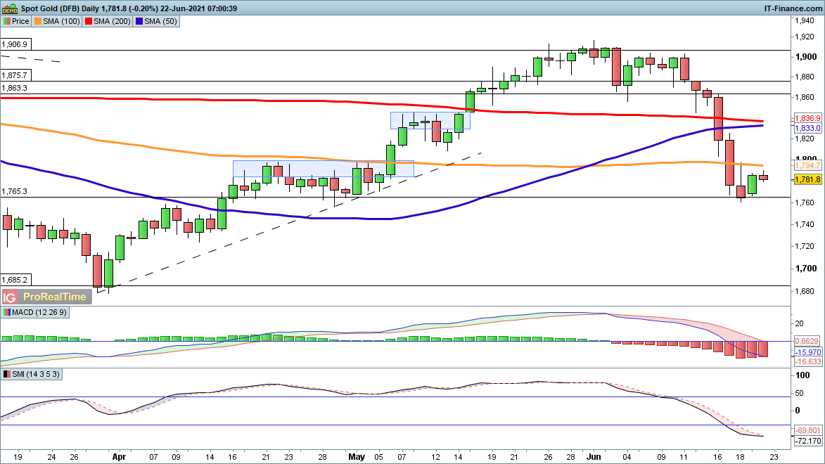 The buyers gained a brief respite yesterday but it is not yet clear whether they can sound the ‘all clear’. If the gold price can move back above $1800 that will help reinforce the bullish view. Sellers will want to get the price back below $1765 to open the way to $1740 and then $1685.