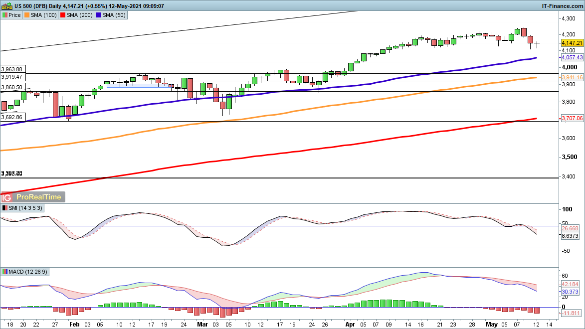 Losses towards 4100 for this index have been stemmed for the time being, so sellers will need to drive the price on below here to retain the advantage. Below this the 50-day SMA (currently 4057) hoves into view, and previous pullbacks this year have found support at or around this indicator.