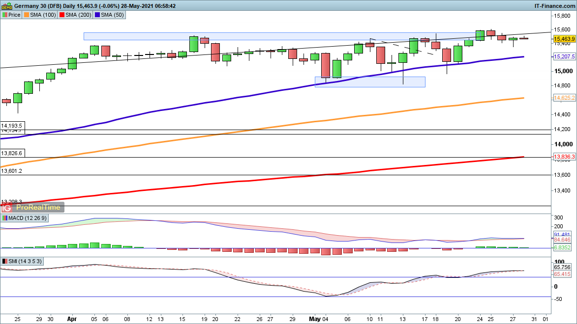 After declining mid-week, the index found buyers yesterday that saw it bounce slightly from 15,370. Further gains target 15,600, while the short-term bearish view would need to see Thursday’s move reversed to open the path to more downside.