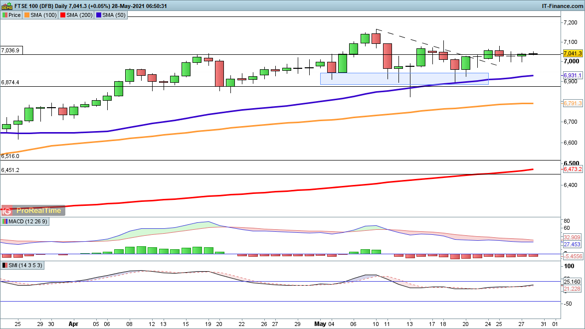 It has been a mixed week for the FTSE 100, with the hopes on Monday and Tuesday for a break higher dashed, as a move above 7070 continues to elude it. However, sellers have also been frustrated since dips to 7000 have found buyers. This leaves the bullish view in place, and suggests that we could still see a push higher in coming sessions.