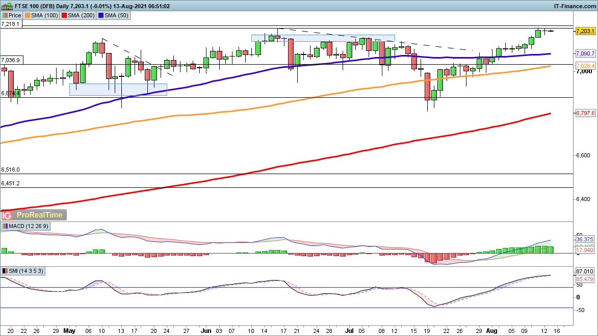 A close above 7218 continues to elude the FTSE 100, but we have seen almost no downside momentum in recent sessions, suggesting that buyers continue to have the upper hand for now.