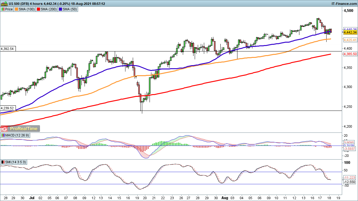 Monday’s strong start to the week for the S&P 500 was not immediately followed up, with a brief drop to 4420 taking place.