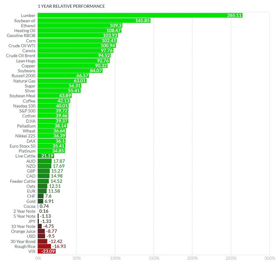 The price of Lumber has been on an incredible rise over the course of the past year, with the 13-months leading to last Monday’s high of $1711.88 bringing an incredible 564% of gains. In fact, this has been the top performing asset over the course of the past 12-months.