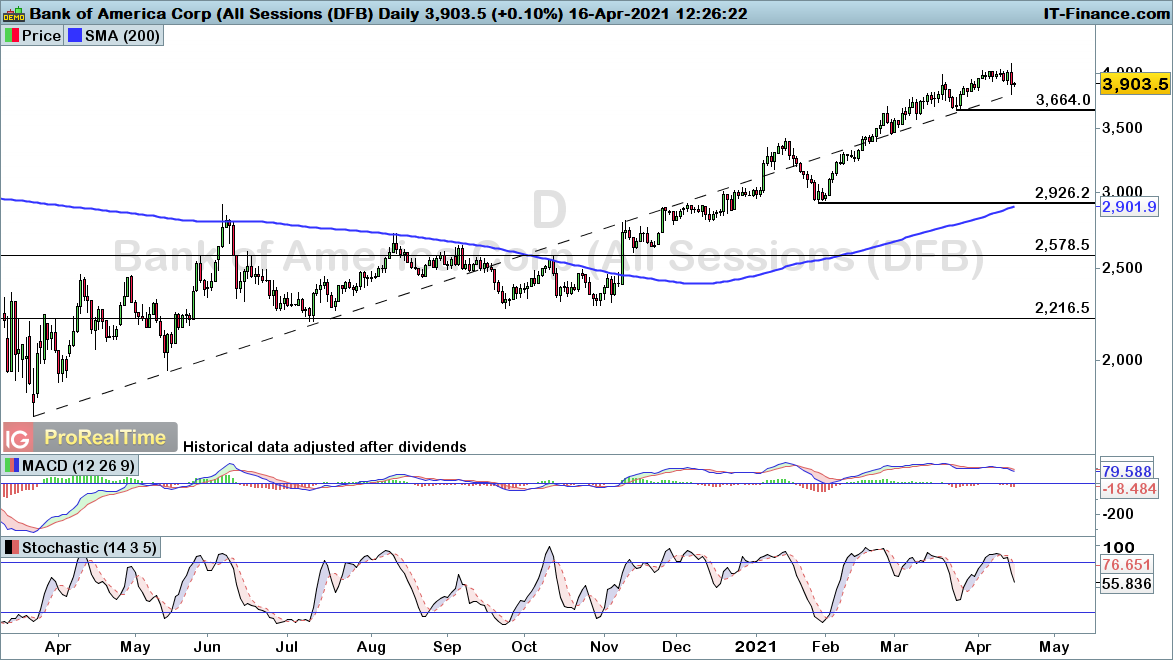 Bank of America shares have seen a pullback on Thursday, despite an impressive set of earnings. However, the long-term outlook provides a particularly interesting buying opportunity after a retracement into inside trendline support. With that in mind, bullish positions are favoured here, with a break back below trendline and $36.64 required to bring an end to this ongoing uptrend.