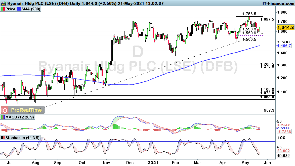 Rather predictably, Ryanair has suffered over the course of the past year. With an 81% decline in traffic, this full-year report provided a continued theme of suffering as the airline reported a net loss of €815 million. Nonetheless, with bookings starting to gather pace, shareholders will hope that the second half of 2021 could see the firm turn a corner. The daily chart highlights how this recent retracement has taken us back into a zone of trendline and Fibonacci support. The existence of that ongoing uptrend highlights how we are likely to once again resolve towards the upside from here. As such, bullish positions are favoured unless price falls back below the £15.00 swing-low.