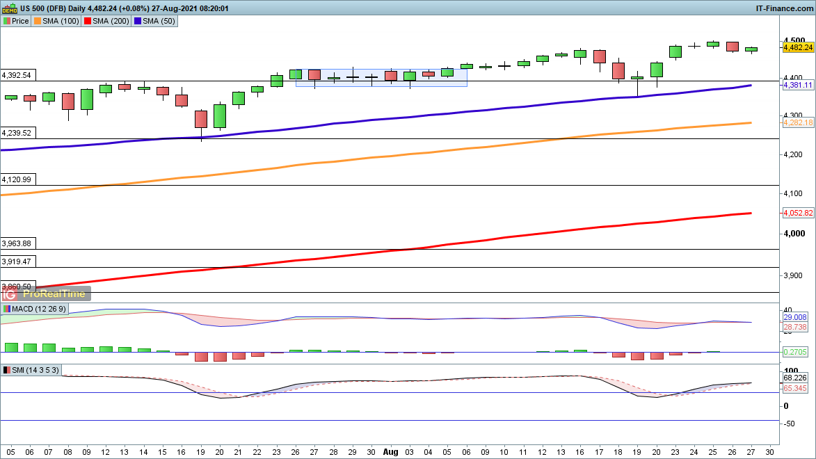 The S&P 500 edged lower yesterday after touching 4500 on Wednesday, but a small recovery overnight has lifted the price off the lows.